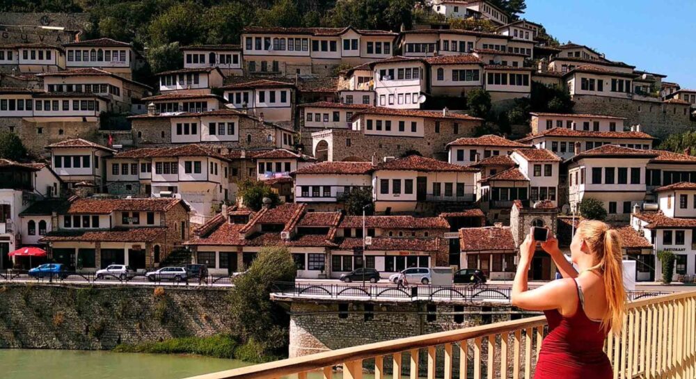 One of the highlights of traveling to Albania is undoubtedly Berat, which has its own unique enchantment. It was given the nickname “town of a thousand windows” for its cluster of white Ottoman buildings that climbed the slope to its fortress. When the clouds break up to reveal Mt. Tomorri’s snowy summit or swirl over the tops of the minarets, the location’s harsh mountain backdrop is very moving. Despite being a significant tourism hub in Albania today, Berat has maintained its laid-back appeal and welcoming ambiance.