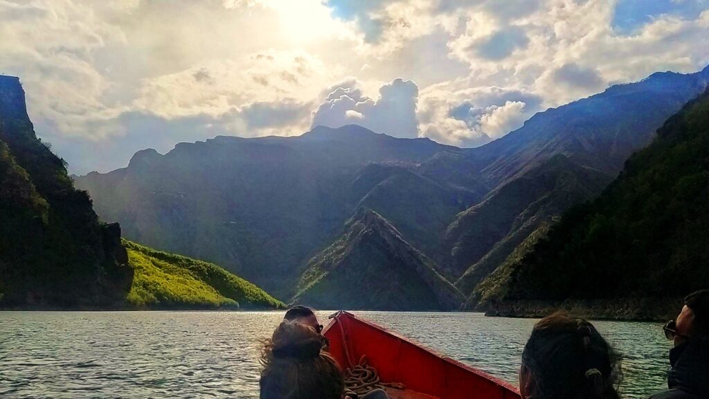 We had entered what is known as the Shala River. The gray rocks on both sides of the river clothed with sparse vegetation, ash on the lower level and pine on the higher, as they came out perpendicularly from the water, seemed to scratch the blue sky stained here and there by some white clouds. Large seagulls circled the boat from time to time. The silence of the valley was broken only by the sound of our boat’s engine, which pushed it along creating gentle waves that then crashed with a splash against the banks of the river. Although the water level had dropped about a meter, the surface of the river was still navigable.